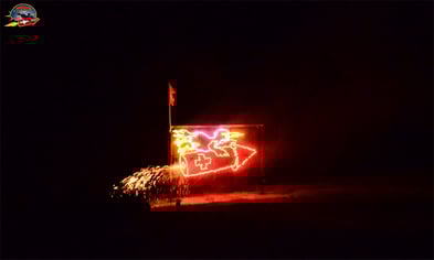 minütiges farbliches Meisterwerk in den Nachthimmel über Colombier zu zeichnen. Die Begeisterung ist riesig und wird mit tosendem Applaus kund getan. Auch die Gastgeber sind hellauf begeistert